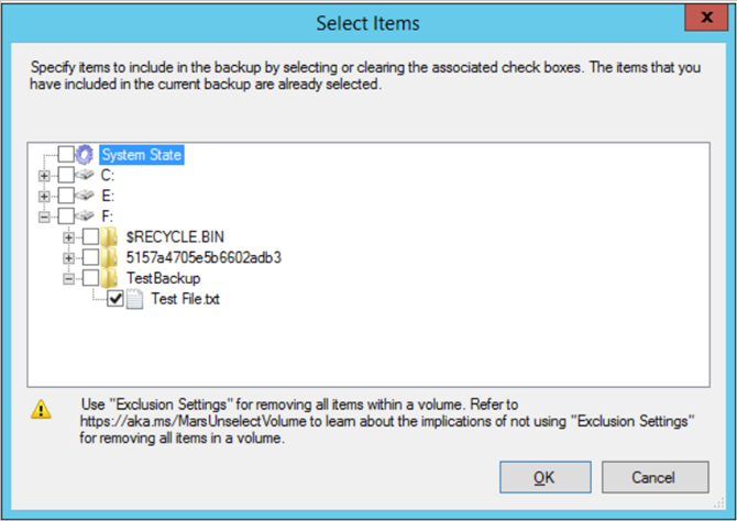 5. In the Select Items box, select items to back up, and then select OK.