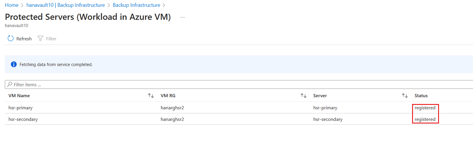Verify the registration status of VMs or Nodes to the vault