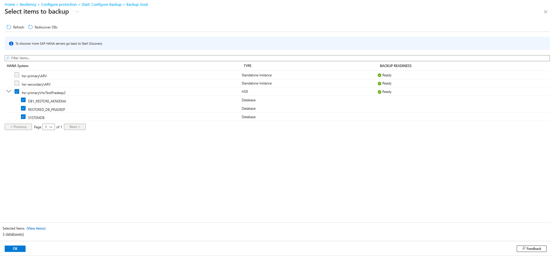 You can also switch the protection of SAP HANA database on Azure VM (standalone) on Azure Backup to HSR. Learn more.