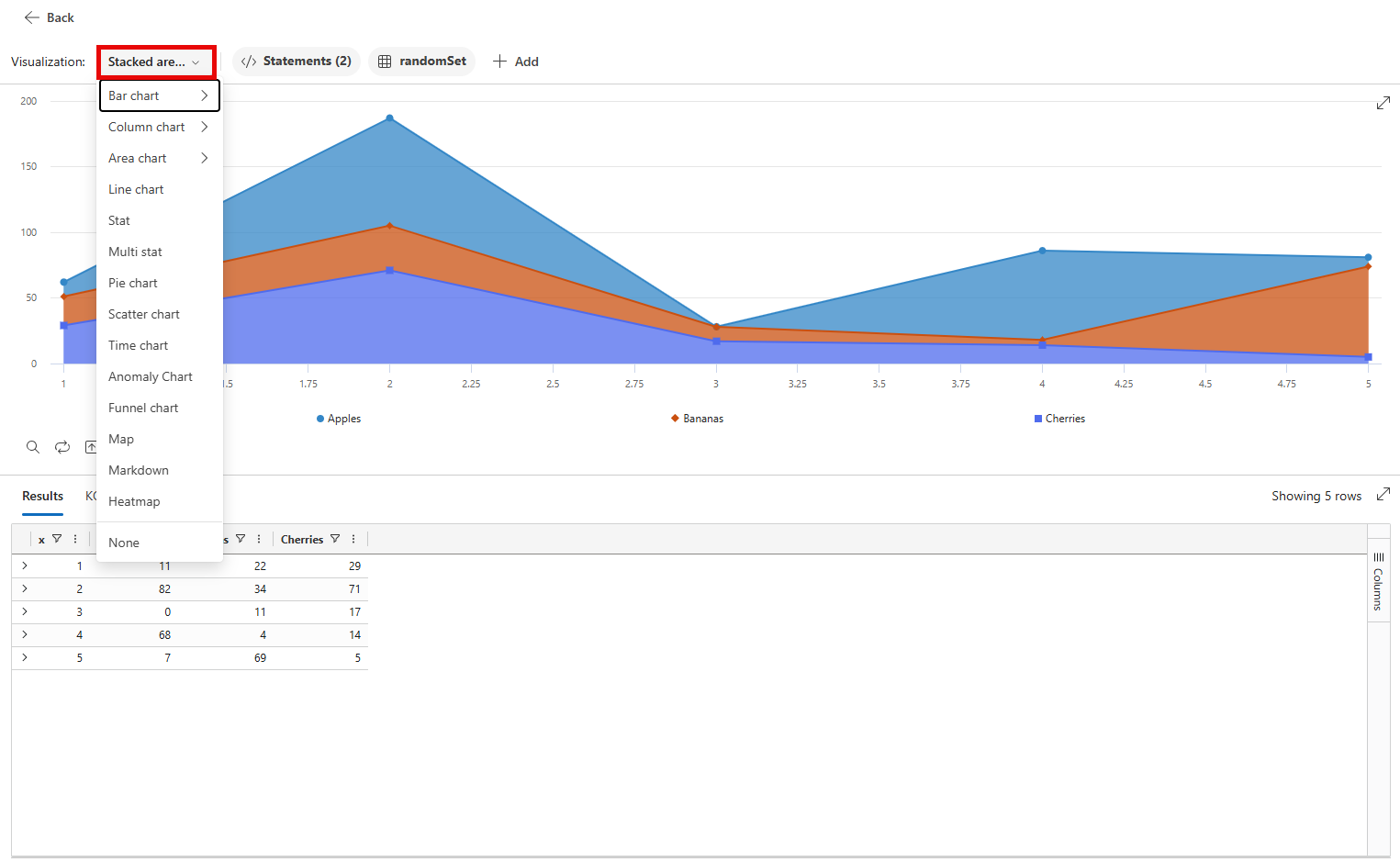 From the Visualization dropdown, select other visual types to visualize your data in different ways.