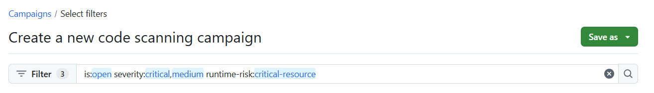 - Start a security campaign on GitHub. This campaign uses runtime context to prioritize GHAS security alerts.