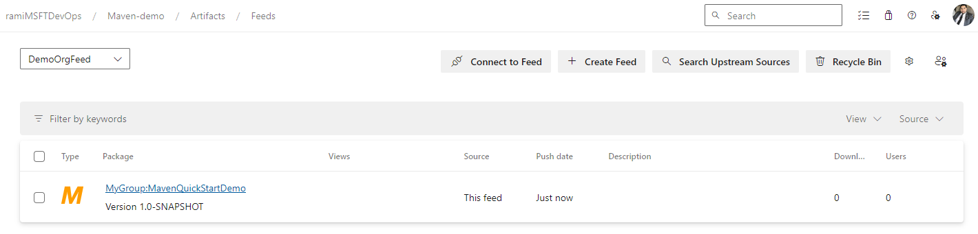 mvn deployAfter successfully publishing your package, it will shortly be available in your Azure Artifacts feed.