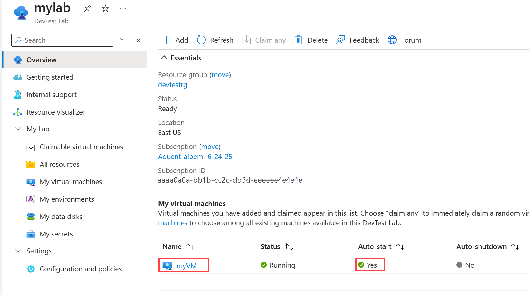 You can also see the autostart status for the VM on the lab Overview page.