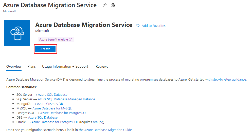 In the Azure portal menu or on the Home page, select Create a resource. Search for and select Azure Database Migration Service.