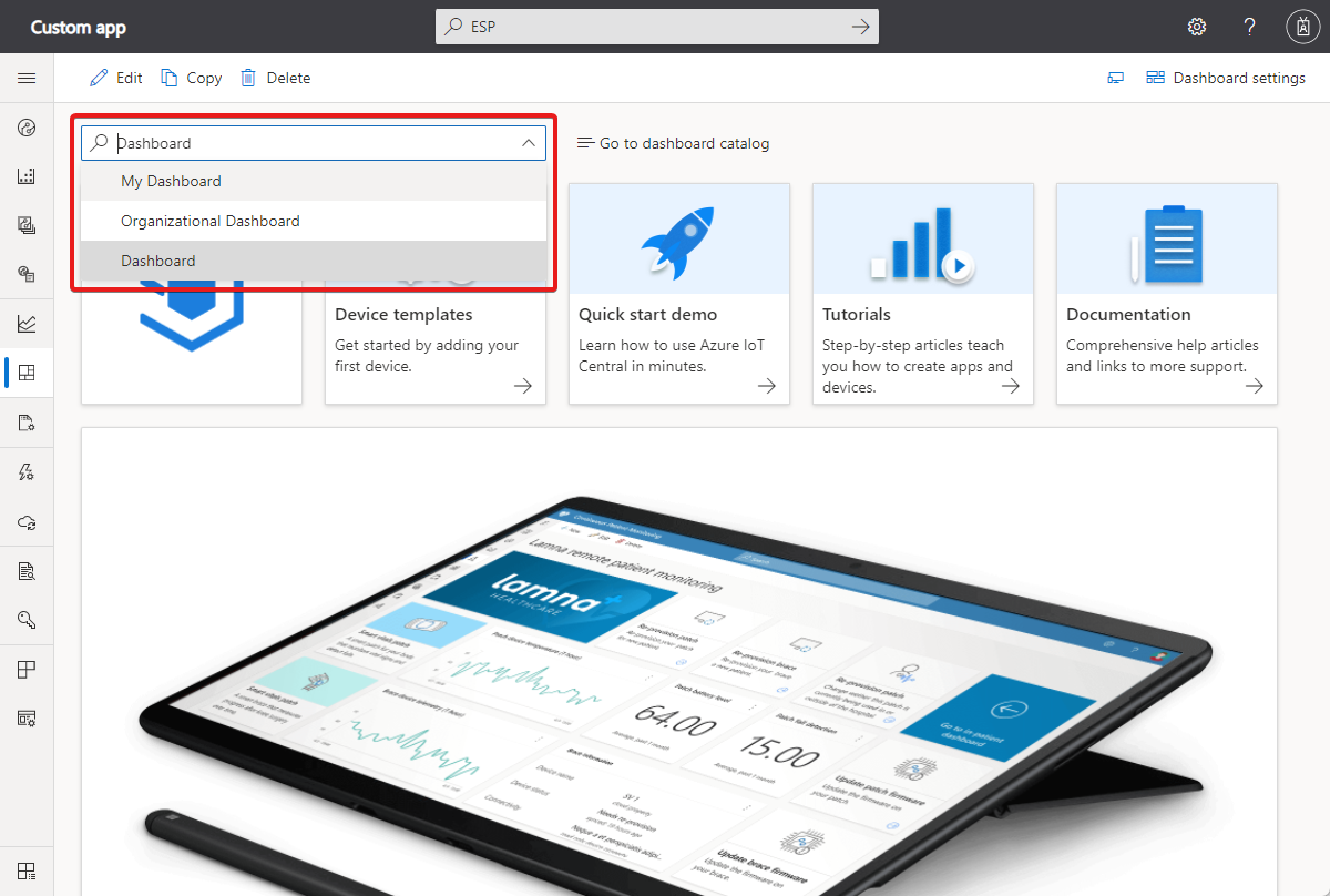 To customize the current dashboard, select Edit.