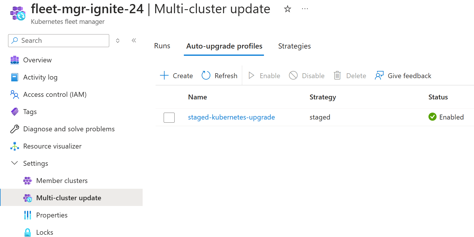In the Azure portal, navigate to your Azure Kubernetes Fleet Manager resource.
