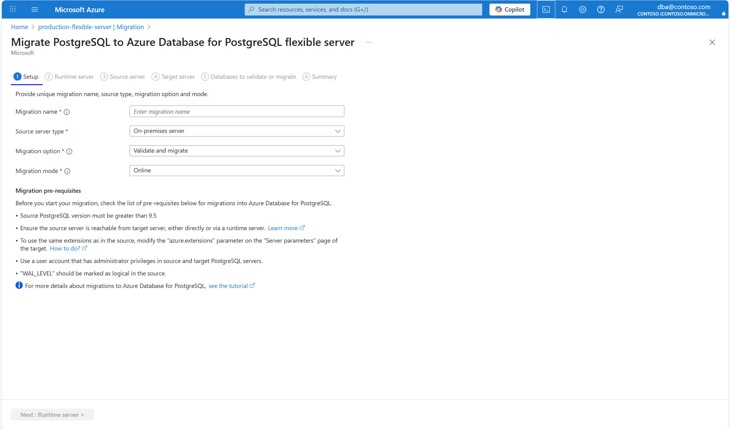 Before starting the migration with the Azure Database for PostgreSQL migration service, it's important to fulfill the following prerequisites, specifically designed for online migration scenarios.