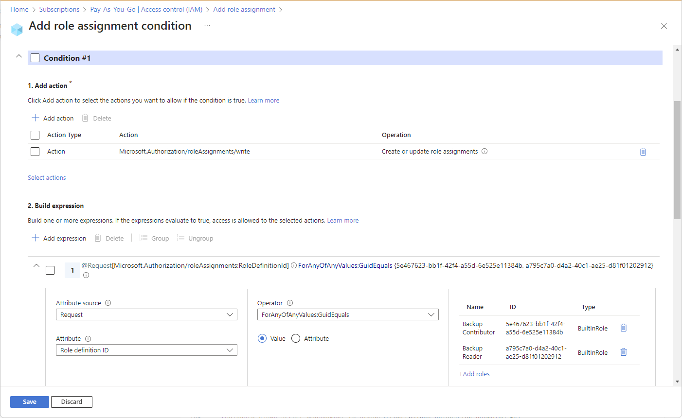 Select Save to add the condition to the role assignment.