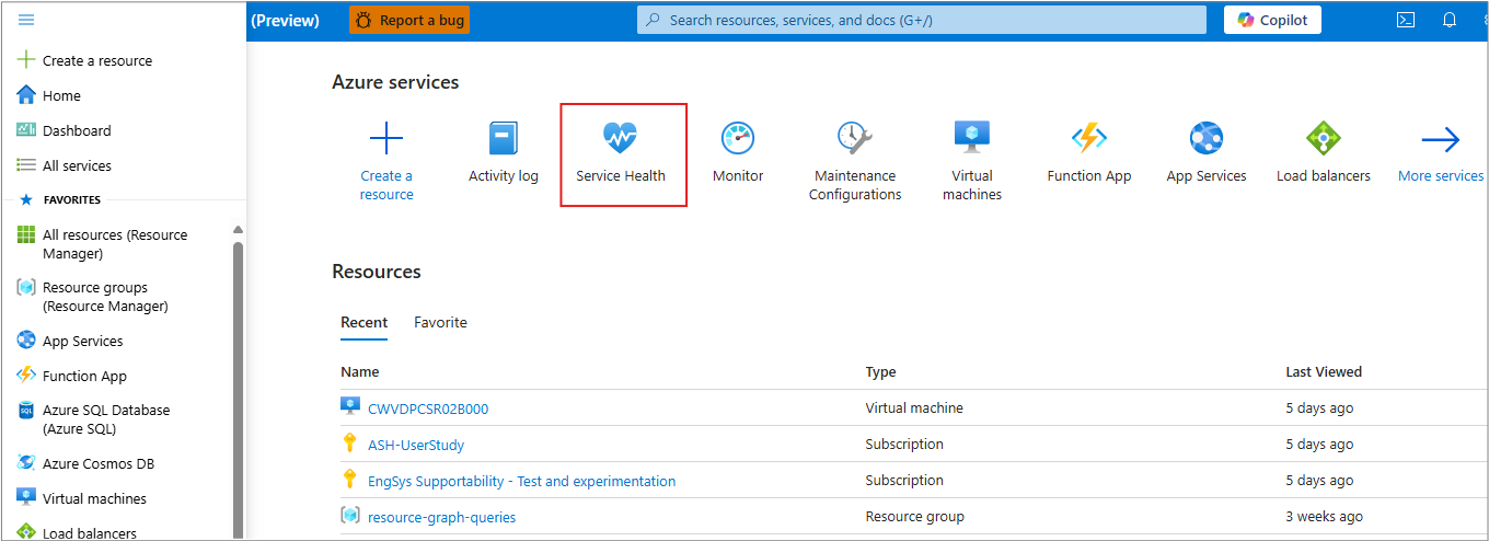 Azure stores Service Health notifications in the Azure activity log, along with other types of events. To help you quickly find what matters, Azure provides a dedicated Service Health experience where you can easily view these notifications and set up alerts.