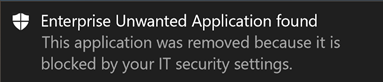 In some scenarios, the ThreatName may appear as: EUS:Win32/CustomEnterpriseBlock!cl.