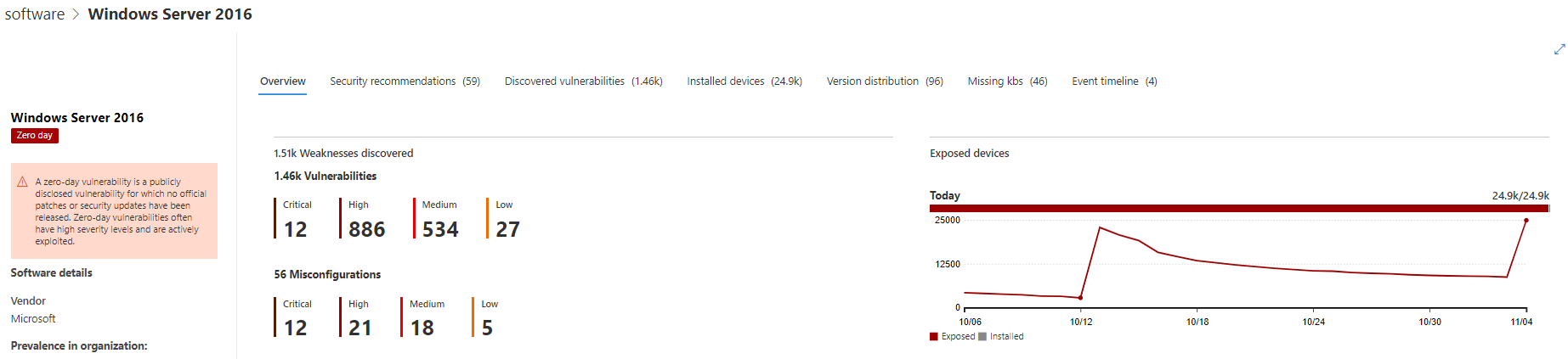 Once a zero-day vulnerability is found, information about it is conveyed through the following experiences in the Microsoft Defender portal.