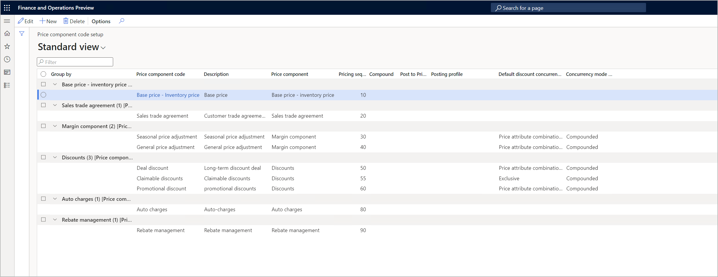 Unified pricing management lets you use margin price adjustments to move item prices up or down from the base price. You can set up these adjustments by including one or more price component codes of the Margin component price adjustment type in your price structures. Price adjustments are compounded across price component codes and add up to the total price adjustment.