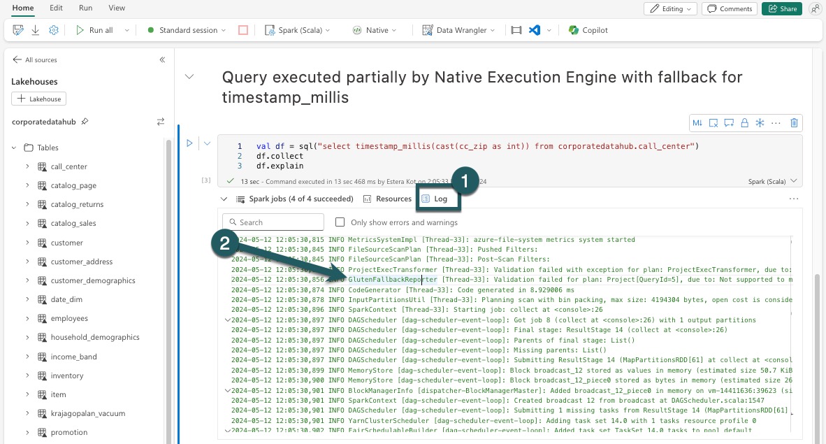 In some instances, the native execution engine might not be able to execute a query due to reasons such as unsupported features. In these cases, the operation falls back to the traditional Spark engine. This automatic fallback mechanism ensures that there's no interruption to your workflow.