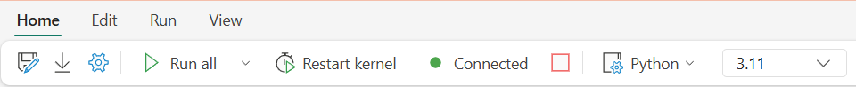 Common Capabilities for Fabric Notebook: All the Notebook level features are naturally applicable for Python notebook, such as editing features, AutoSave, collaboration, sharing and permission management, Git integration, import/export, etc.