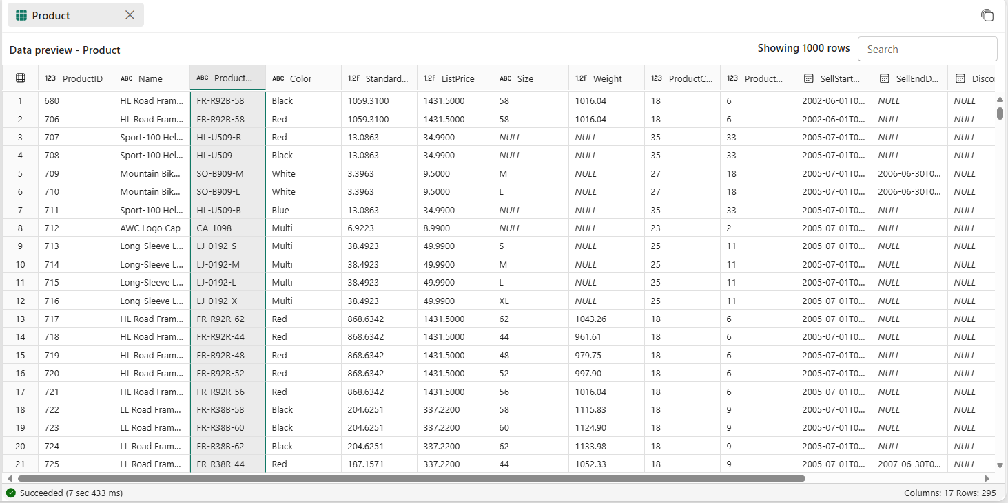 - If number of rows returned is more than 10,000 rows, the preview is limited to 10,000 rows. To view the entire result set, you can also connect to your SQL database with SQL connection string or directly open in SQL Server Management Studio (SSMS) or MSSQL Extension for Visual Studio Code.
