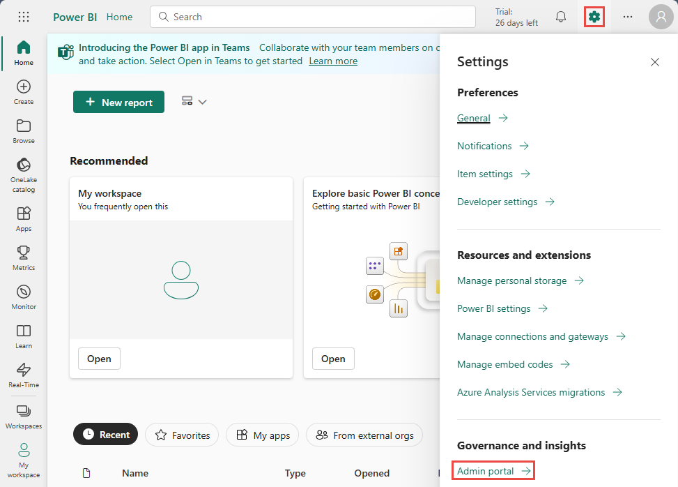 Under Governance and insights, select Admin portal.