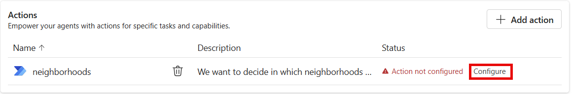 - After you create an action, configure it: