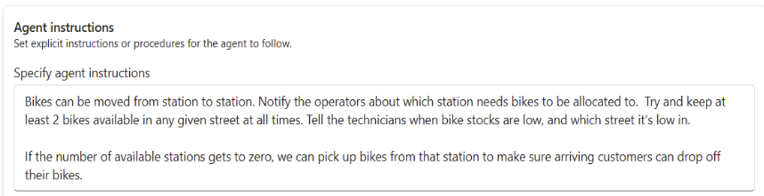 Agent instructions: Provide specific instructions to guide the agent's behavior and decision-making process.
