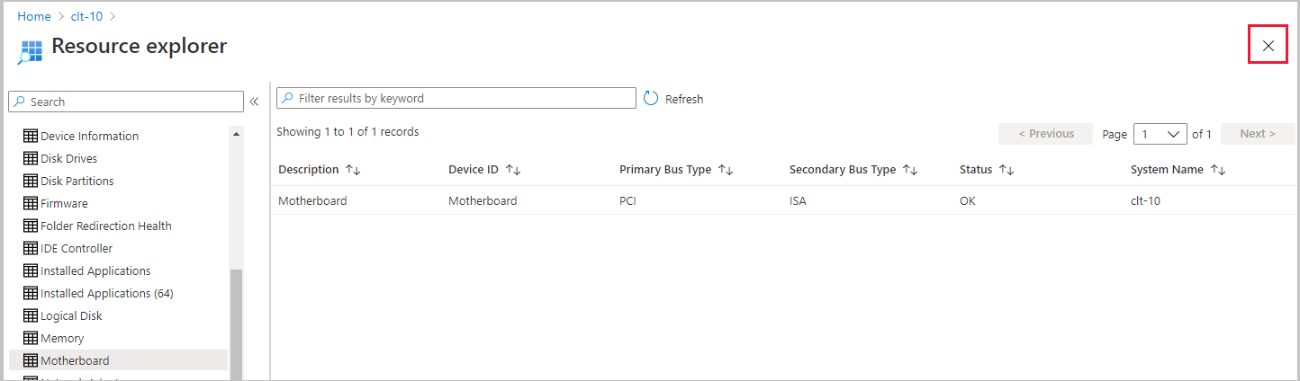 To close resource explorer and return to the device information, use the X icon in the top right of resource explorer.