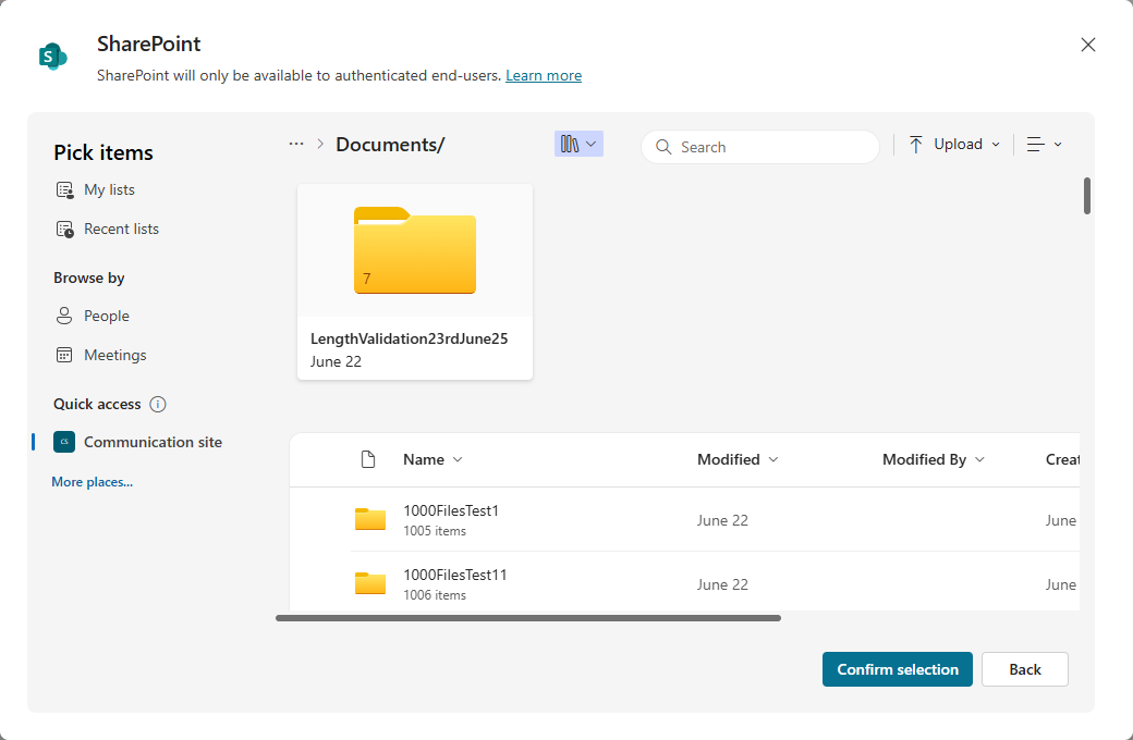 For a list of limits and supported SharePoint functionality, see Copilot Studio web app SharePoint limits.