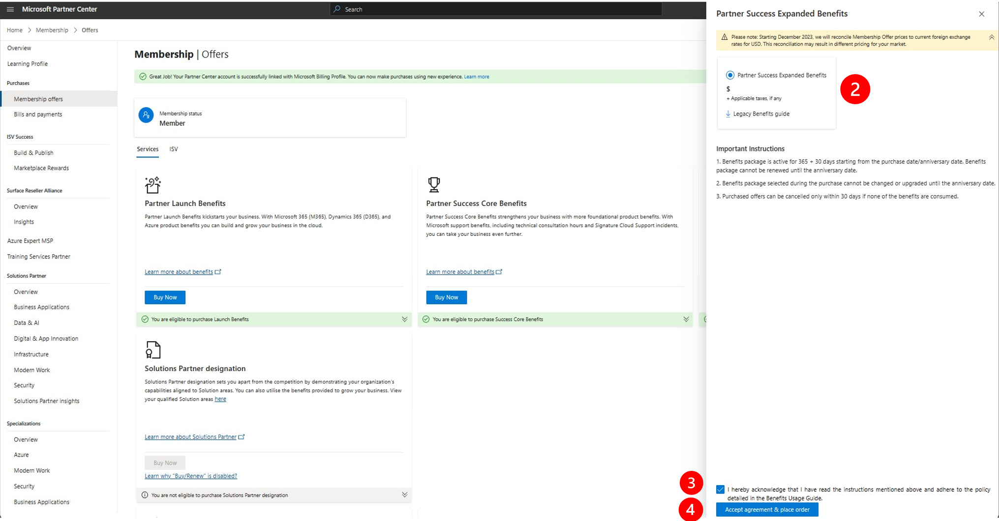 - Look for the Partner Success Expanded Benefits card and then Buy now. If Buy Now is disabled, you can check the link Learn why "Buy/Renew" is disabled?