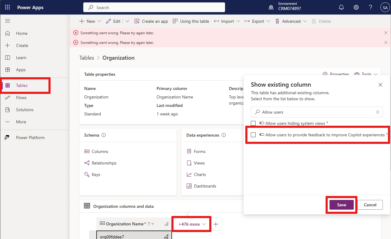 Search for Allow users to provide feedback for App Copilot, and make sure the check box is unchecked.