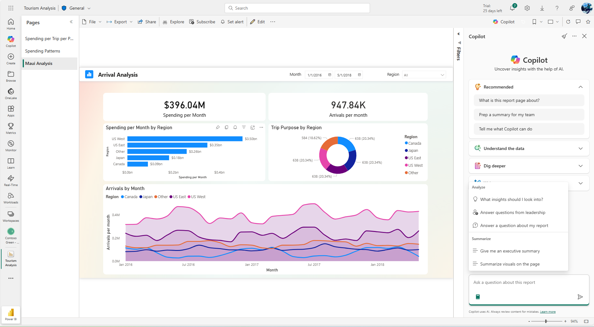 Answer questions about your report content in the Copilot pane