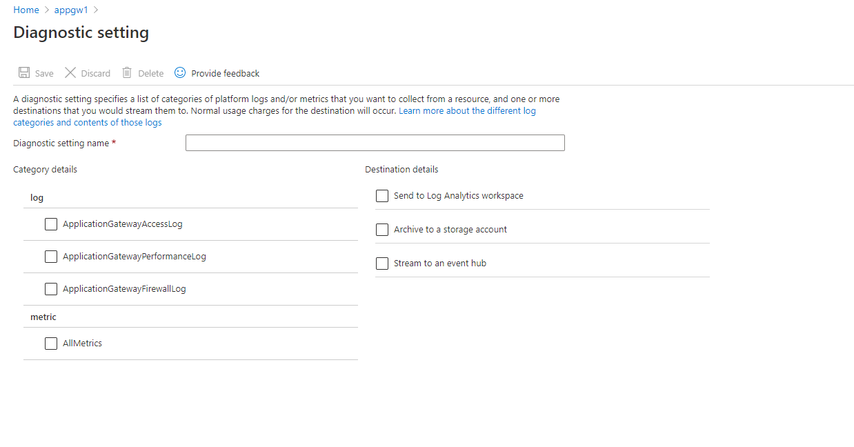 Enable Application Gateway diagnostics in the portal