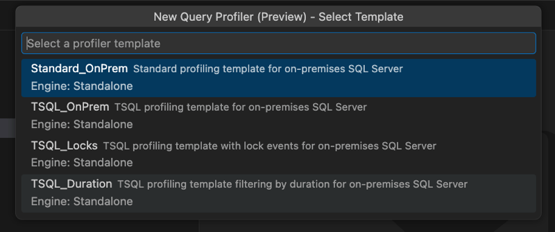 - Standard_OnPrem: Standard profiling template for on-premises SQL Server.
