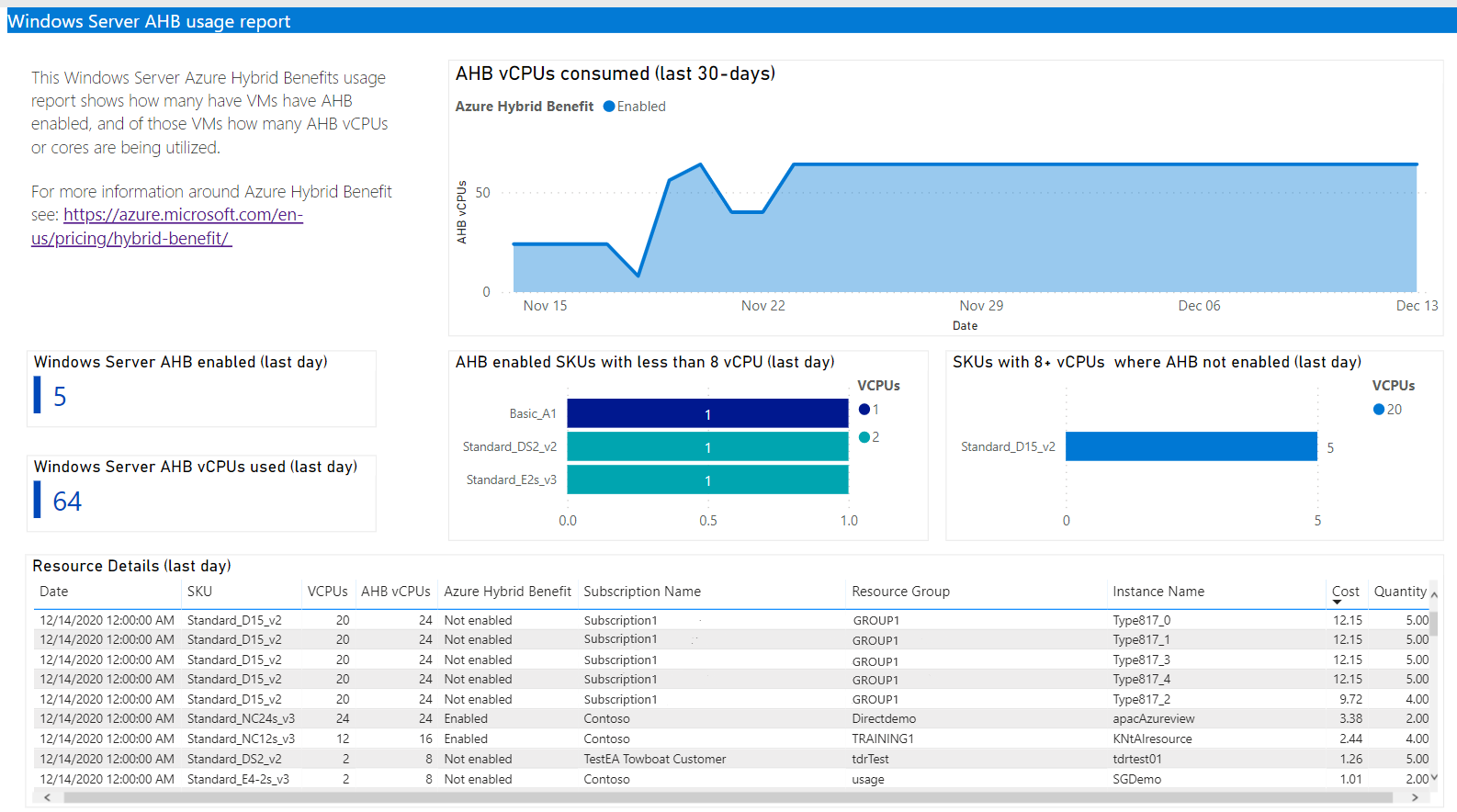 If you're already using your benefit, then use the Windows Server AHB Usage report to identify the servers that have AHB enabled. When you're not using your benefit, the report shows you where you can use it. In either case, the report helps maximize your benefit usage by showing recommendations that help save you money. Because of the complicated nature of the benefit, the report can give you confidence to fully use your Windows Server licensing benefit without unintentionally exceeding it.