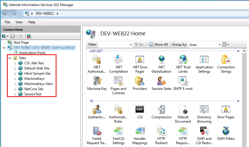 5. Select the Apply button from the right-hand side pane of IIS Manager to save the changes to the IIS configuration: