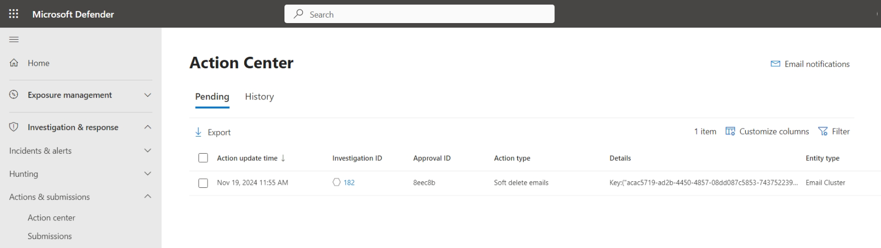 The Investigation and response section provides a single location for investigating security incidents, and responding to threats across the enterprise.