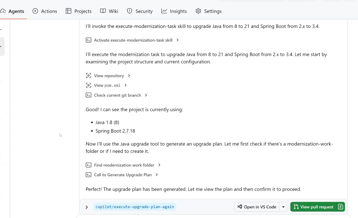 cd <repository-name> gh pr create --title "Upgrade to Java 21" --body "Automated upgrade by modernization agent"