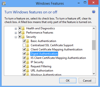 | IIS 8.0 | El elemento <digestAuthentication> no se modificó en IIS 8.0. |