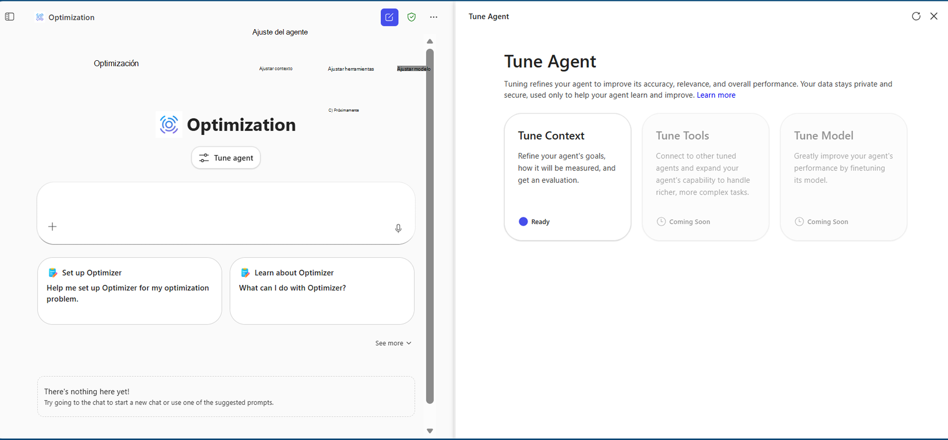 Ajuste de una plantilla de agente de optimización