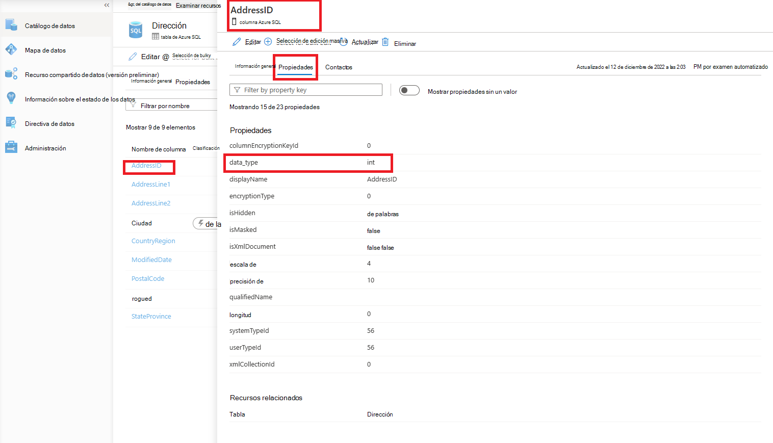 ... "relationshipAttributeDefs": [ ... { "name": "columns", "typeName": "array<azure_sql_column>", "isOptional": true, "cardinality": "SET", "relationshipTypeName": "azure_sql_table_columns", }, ]Cada relación tiene su propia definición. El nombre de la definición se encuentra en el atributo relationshipTypeName . En este caso, es azure_sql_table_columns.