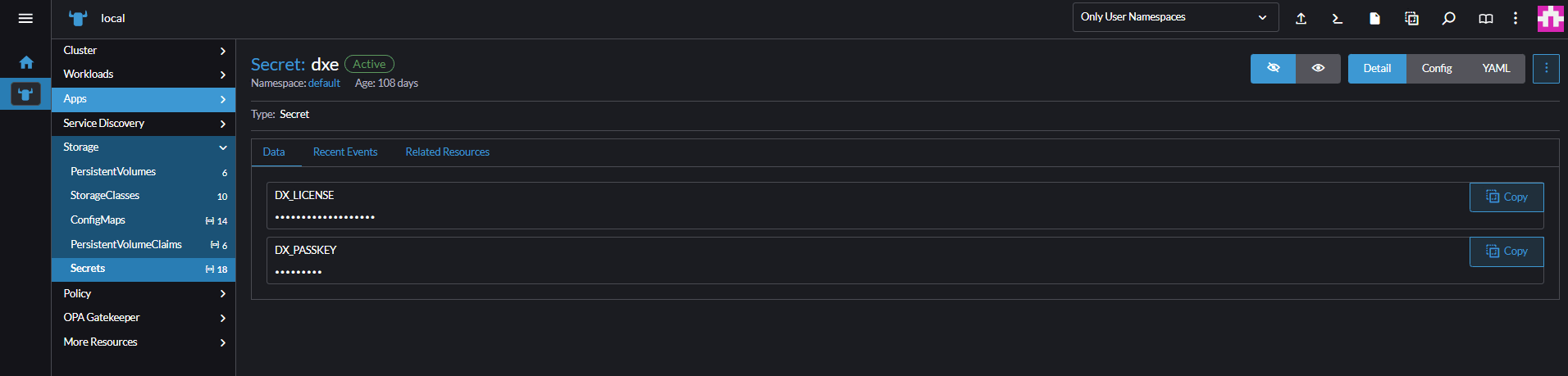 DX_LICENSE, con el valor de la clave de licencia de DxEnterprise.Seleccione Crear para terminar de crear la clave de licencia.