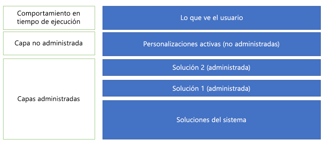 El concepto de capas es clave para que múltiples soluciones funcionen juntas en un solo entorno. También permite un mayor nivel de personalización de componentes desde una solución administrada.
