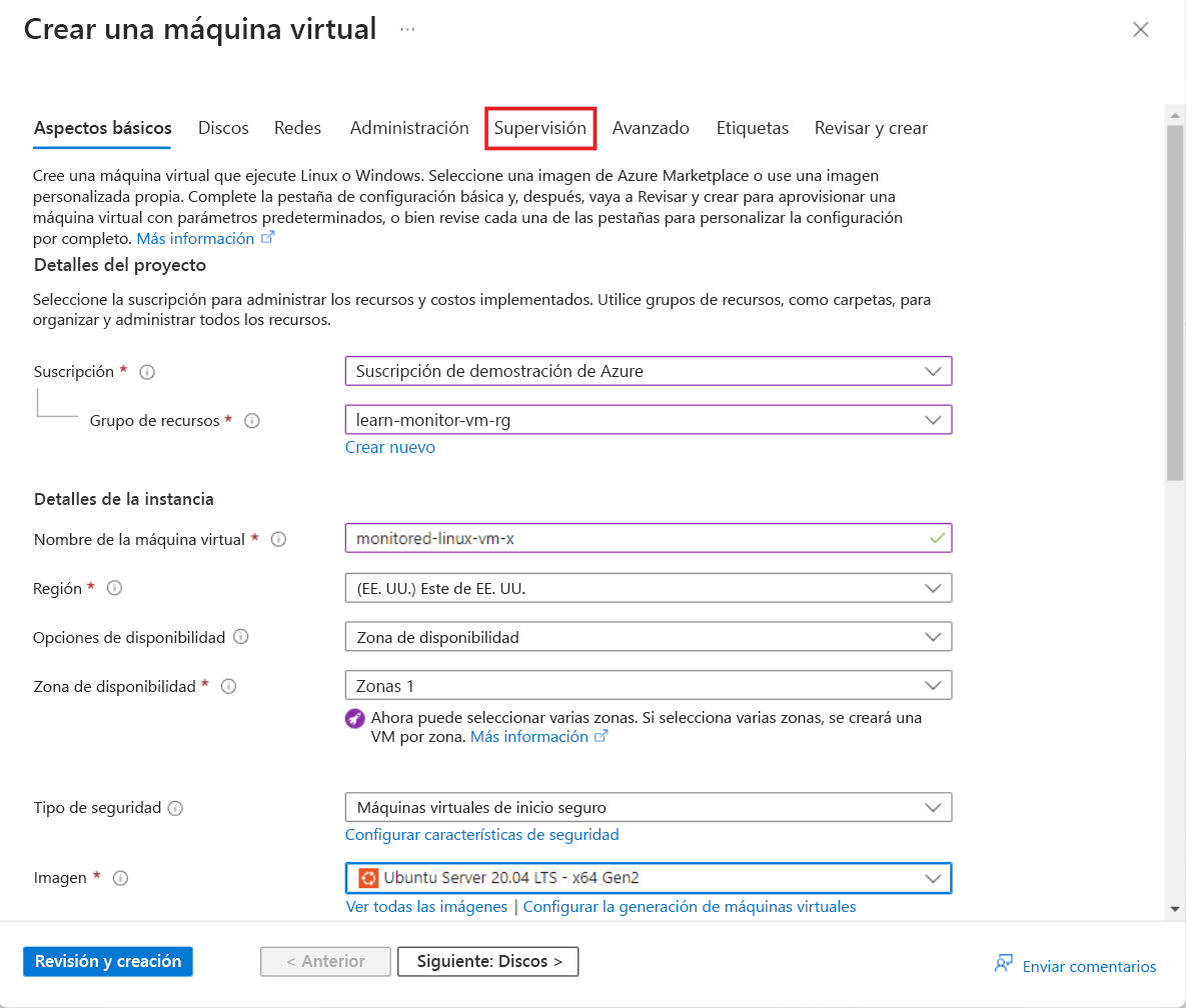 - En Nombre de máquina virtual, escriba monitored-linux-vm.