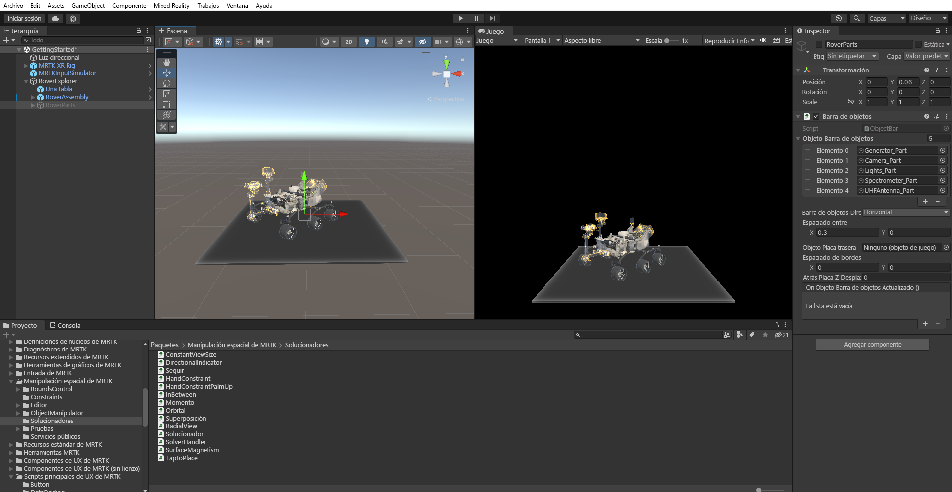Ubicación de los solucionadores en MRTK