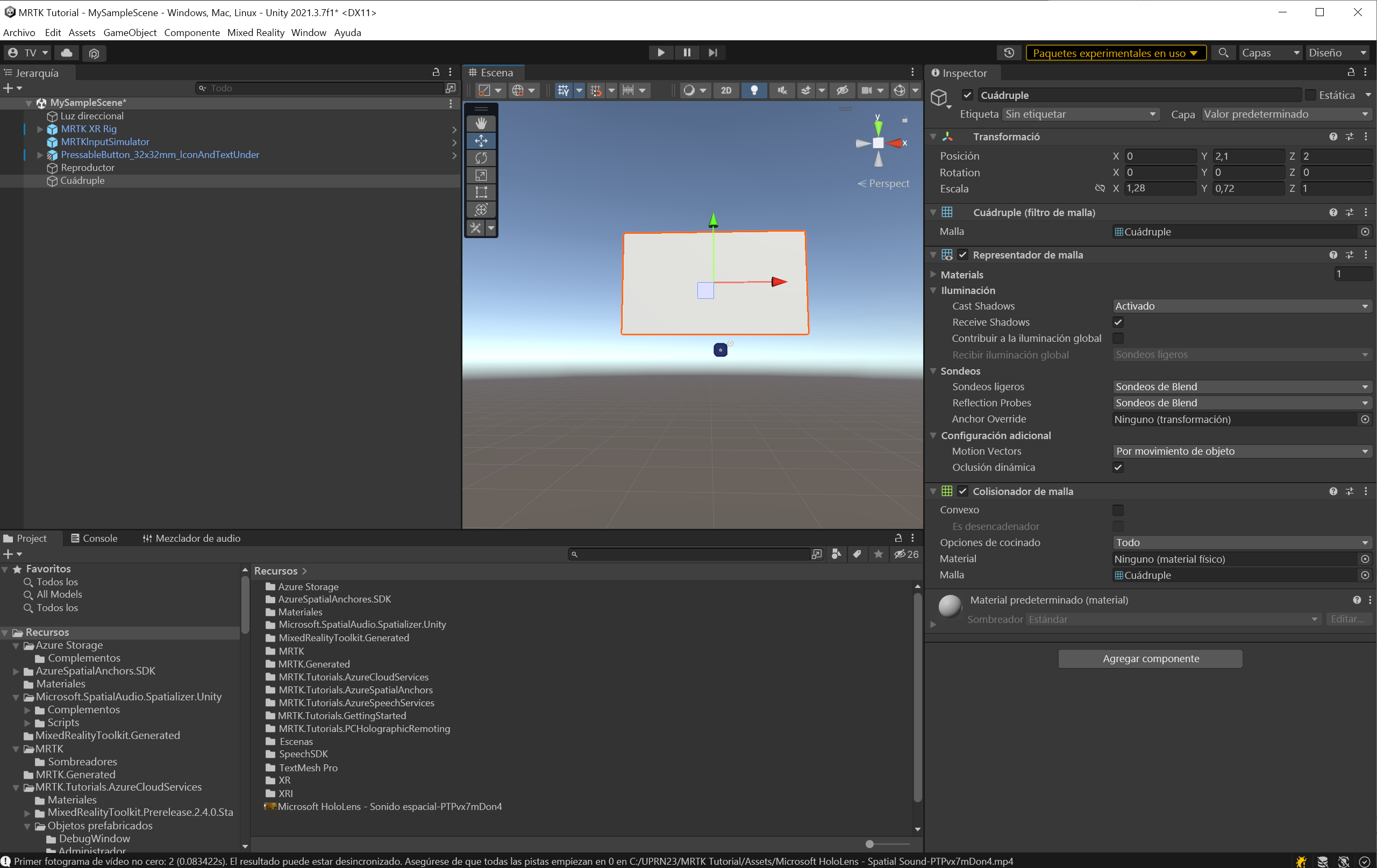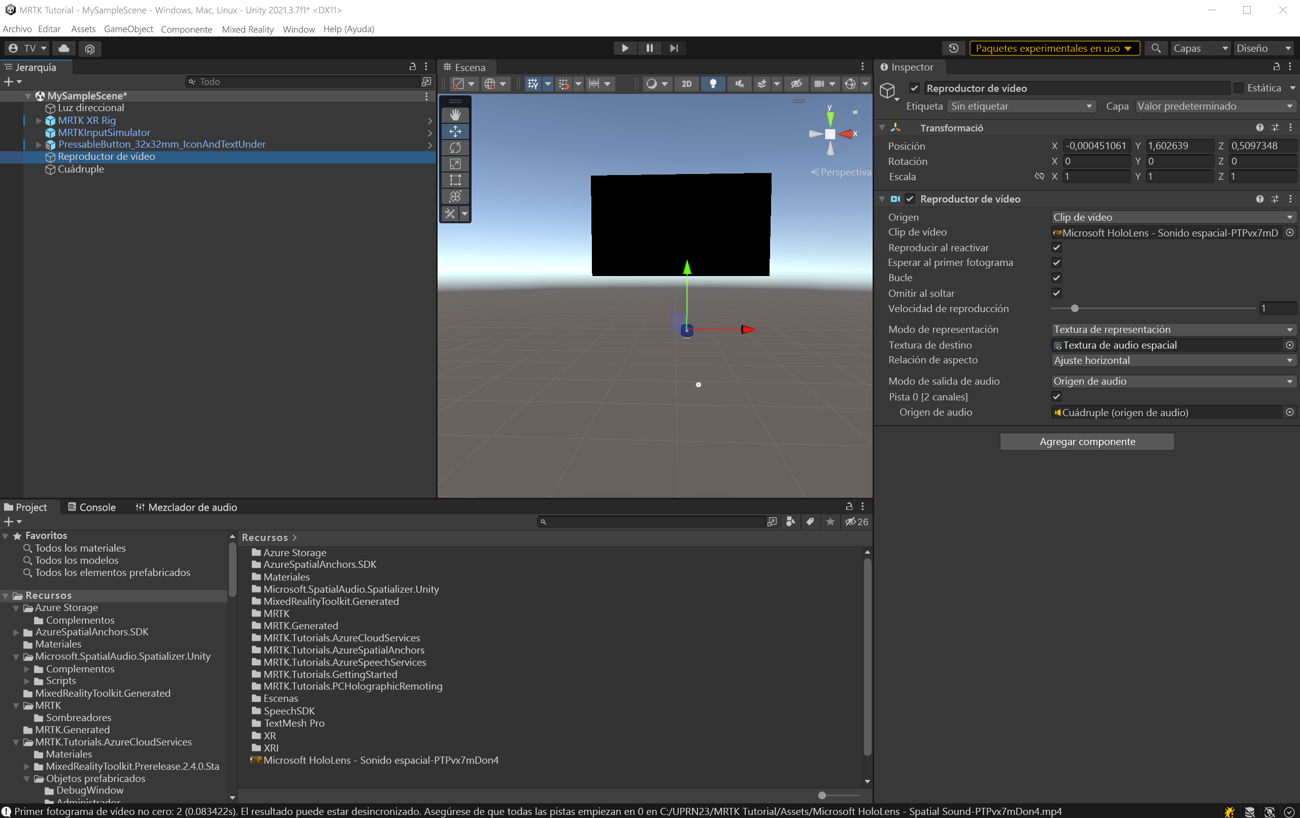 En esta unidad, aprenderá a espacializar audio desde un origen de vídeo y probarlo en el editor de Unity y HoloLens 2.