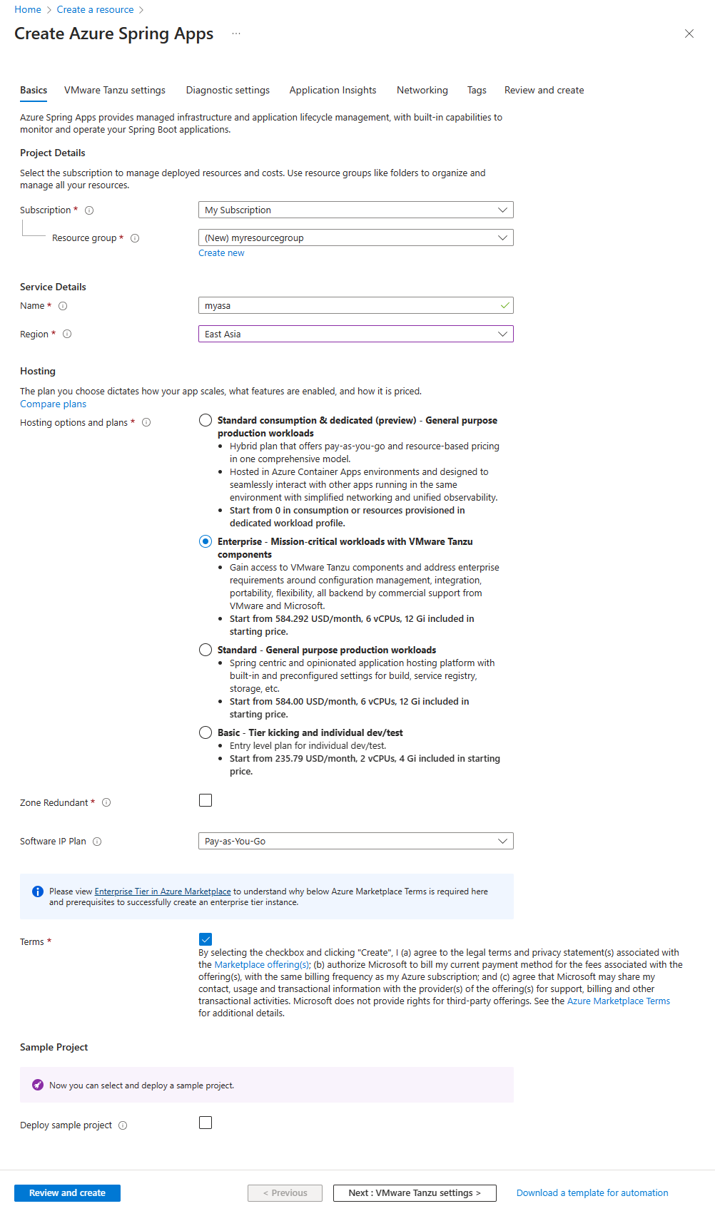 3.2. Creación de una instancia de Azure Spring Apps
