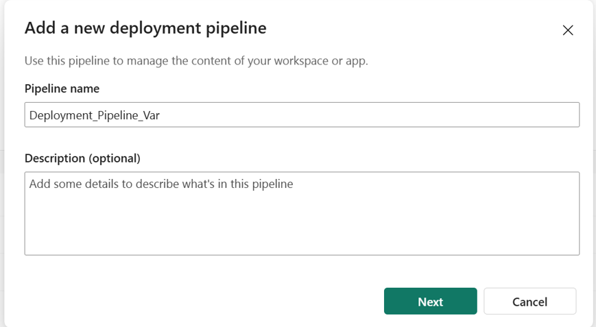 Nimeä putki Deployment_Pipeline_Var ja valitse sitten Seuraava.