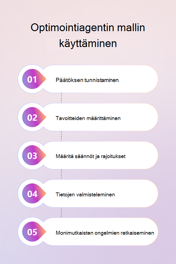 Käyttämällä optimointiagentin mallia voit ratkaista päätöspohjaisia liiketoimintaongelmia määrittämällä:
