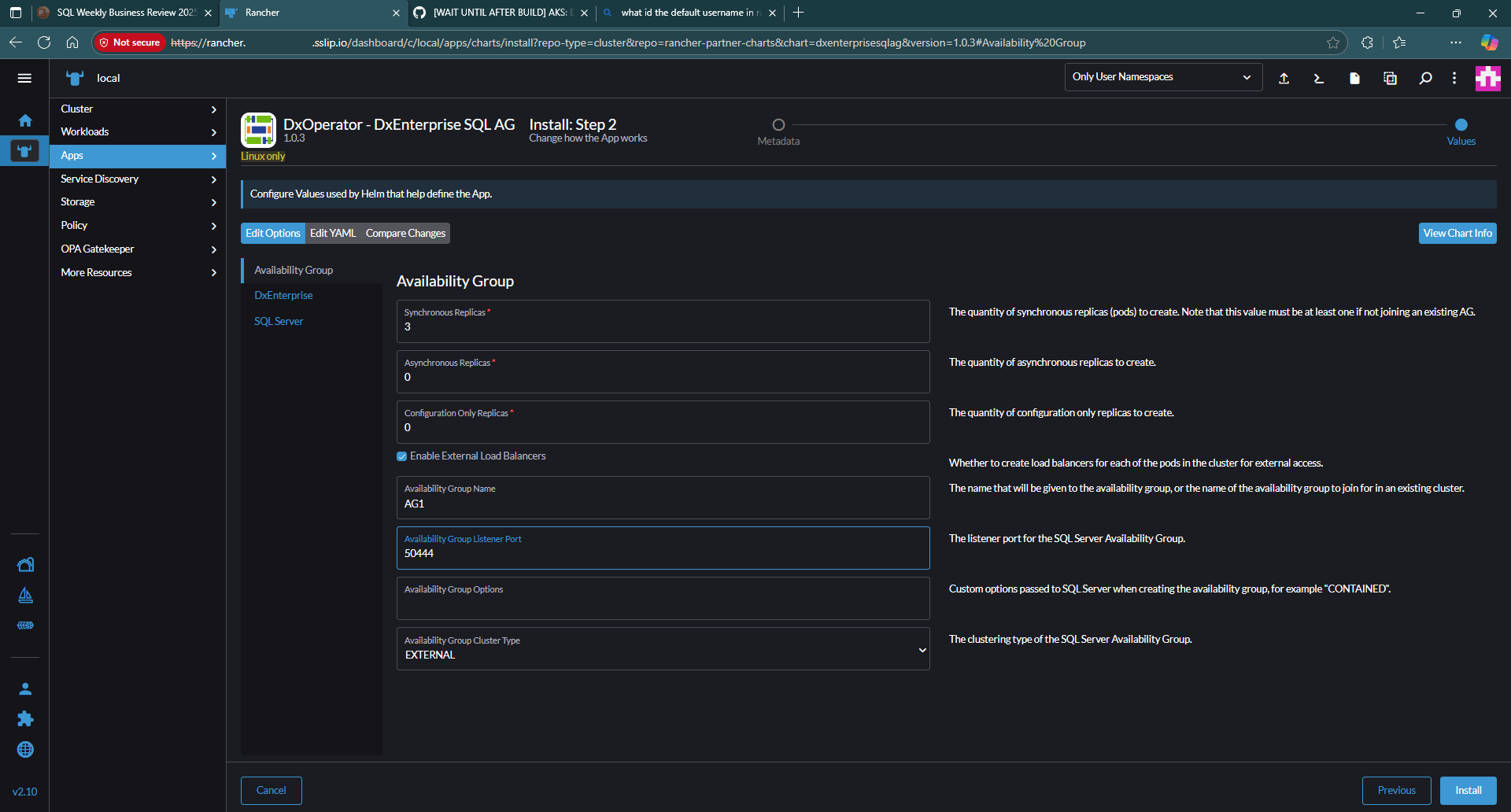 This tutorial provides instructions on setting up SQL Server configured with Always On availability groups (AGs) in an Azure Kubernetes Service (AKS) cluster. It utilizes the DH2i DxOperator and Rancher Prime from SUSE for deployment.