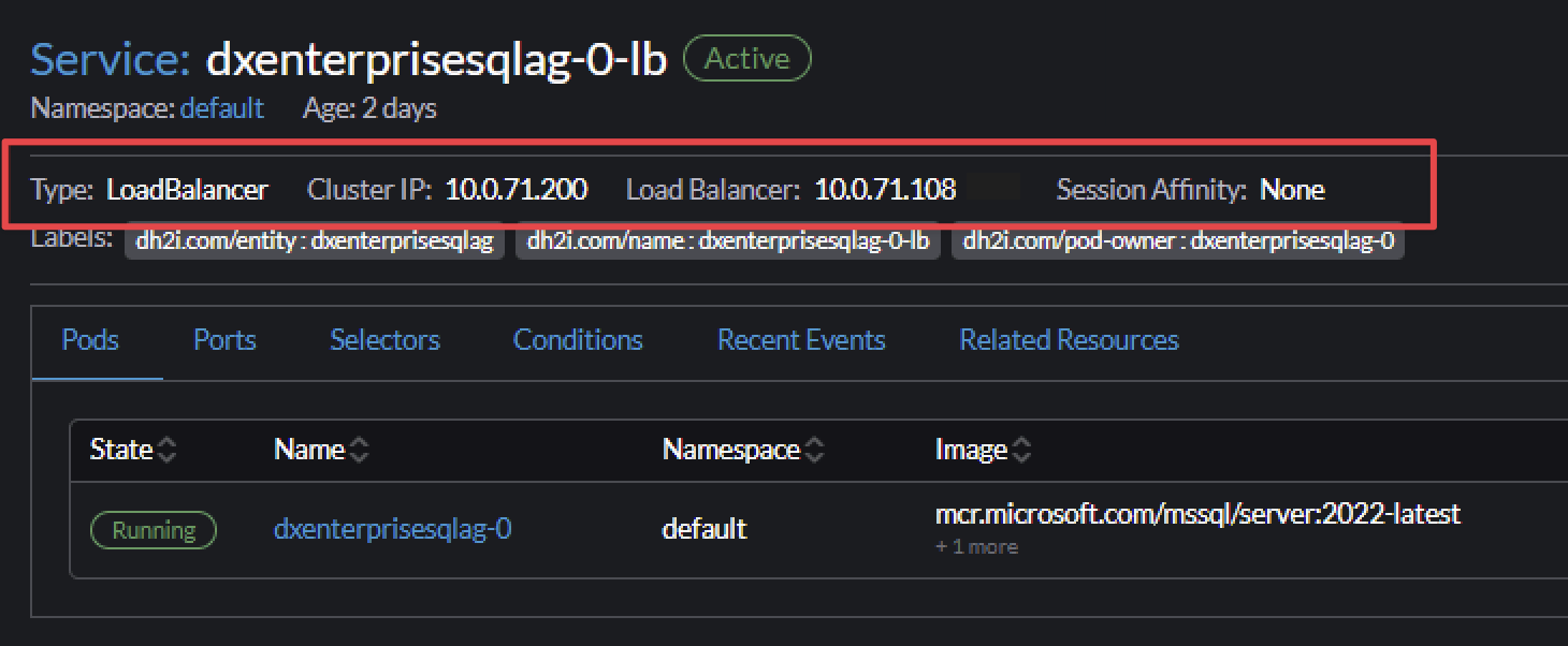 DxEnterprisesqlag-1-lbFetch the external/load balancer IP address