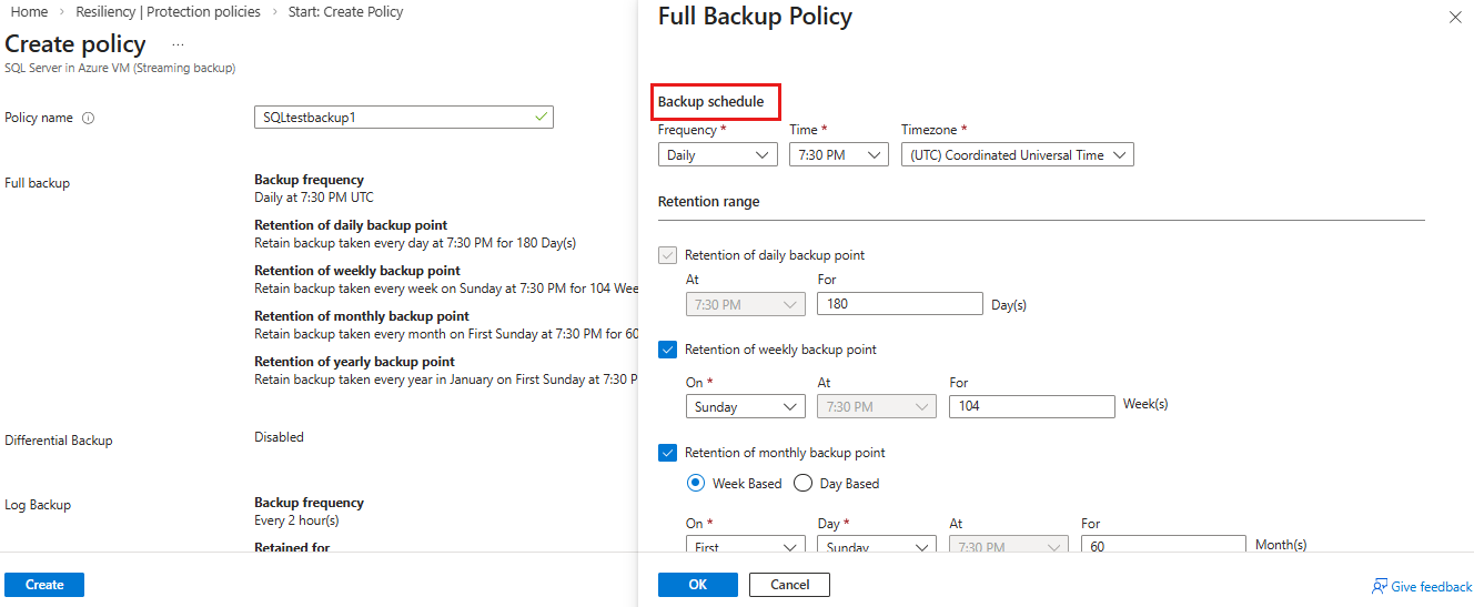 Passare a Resilienza e quindi selezionare Gestisci> criteri >+ Crea criterio>di backup.