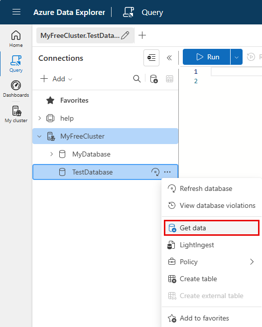 - Accedere all'interfaccia utente Web di Azure Esplora dati.