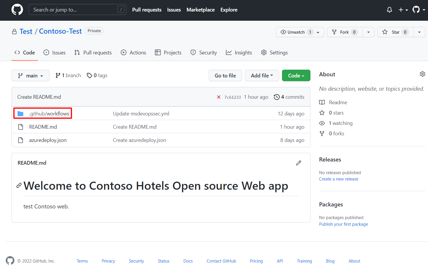Your repository's home page>.github/workflows.Selezionare msdevopssec.yml, creato nei prerequisiti.