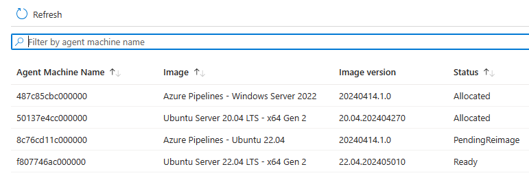 Per visualizzare lo stato degli agenti nel pool, passare al pool e selezionare Impostazioni>Agenti.